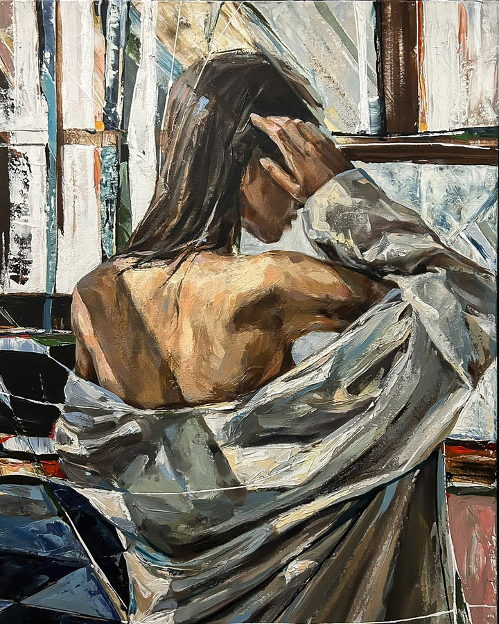 Some works become soft meditations on memory. Others evolve into bold, faceless portraits inspired by my My Women series where identity fades and essence takes form.